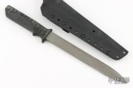 This Norwegian Seal Team Mine Probe, Circa 2001, by Strider features a double edged bead blasted blade with .249" blade stock and .999" blade depth, hidden tang construction with a black G-10 grip, lanyard hole at the butt. Comes with a kydex sheath. Has some light scuffs and scratches, great condition otherwise.