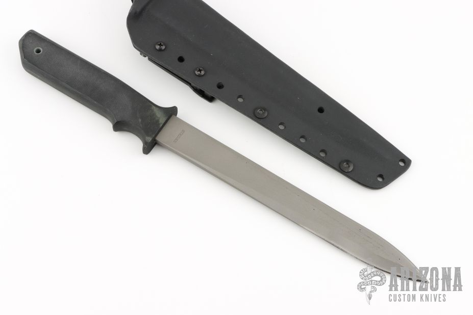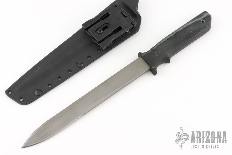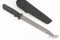 This Norwegian Seal Team Mine Probe, Circa 2001, by Strider features a double edged bead blasted blade with .249" blade stock and .999" blade depth, hidden tang construction with a black G-10 grip, lanyard hole at the butt. Comes with a kydex sheath. Has some light scuffs and scratches, great condition otherwise.