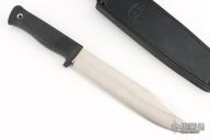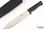 The Model A2 by Fallkniven is a semi-large all-purpose knife for heavy-duty use. The powerful blade is made of extremely hard yet tough laminated VG10 steel and will withstand the stress of hard use. The knife is superb to chop with, but also works very well with daily tasks, thanks to the ergonomic grip. The full tang goes entirely through the handle, so you can strike the end of it without breaking the grip. The sturdy black zytel sheath allows you to fasten the knife on your belt or your pack - even upside down. Model A2 is a water repelling concept which works just as well in extreme cold as in stifling heat. Blade is .233" thick and 1.409" deep. Comes with black leather sheath with belt loop. Excellent condition.