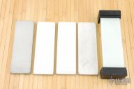 Each stone is backed with 5 millimeters of glass which provides a firm, flat base to adhere the ceramic waterstone abrasives. In addition, the glass backing provides you with a greater utilization of the stone because you can wear it down to the very end. In any other waterstone, as they wear thin, the stone will break and cannot be used.