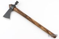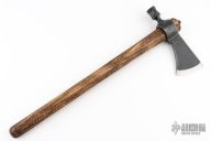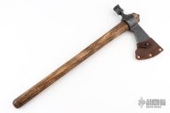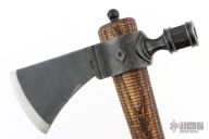 The Patriot pipe tomahawk is a mix of history along with new and old school manufacturing techniques to create an incredible, working tomahawk. Ryan Johnson's historical knowledge and distinct design philosophy, makes for a heck of a foundation. The authentic style head is investment cast from 6150 tool steel, and finished with a gorgeous, dark patina. The 19" ash handles, made by Ryan on a 1903 Gunstock lathe have a very unique texture and finish. If you do smoke it, the handle has a threaded 17-4 stainless steel clean out plug.