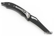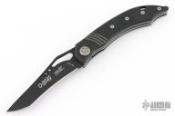 This is a Delta Z Osprey linerlock by Delta Z Knives is a Darrel Ralph design. It features a black tanto recurve blade with thumbhole. The handle has black g10 scales, stainless steel liners and tip down clip. Comes with original box. Excellent condition.
