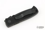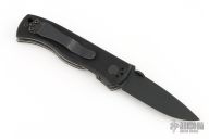 This production Mini CQC-7A has a black coated blade with notched thumbrest and thumbdisc. The handle has black G-10 scales, titanium liners, tip up black stainless clip, lanyard hole.  Dated 2001 and #484. Comes with original box and papers. Has a couple light scuffs, otherwise Excellent condition.