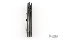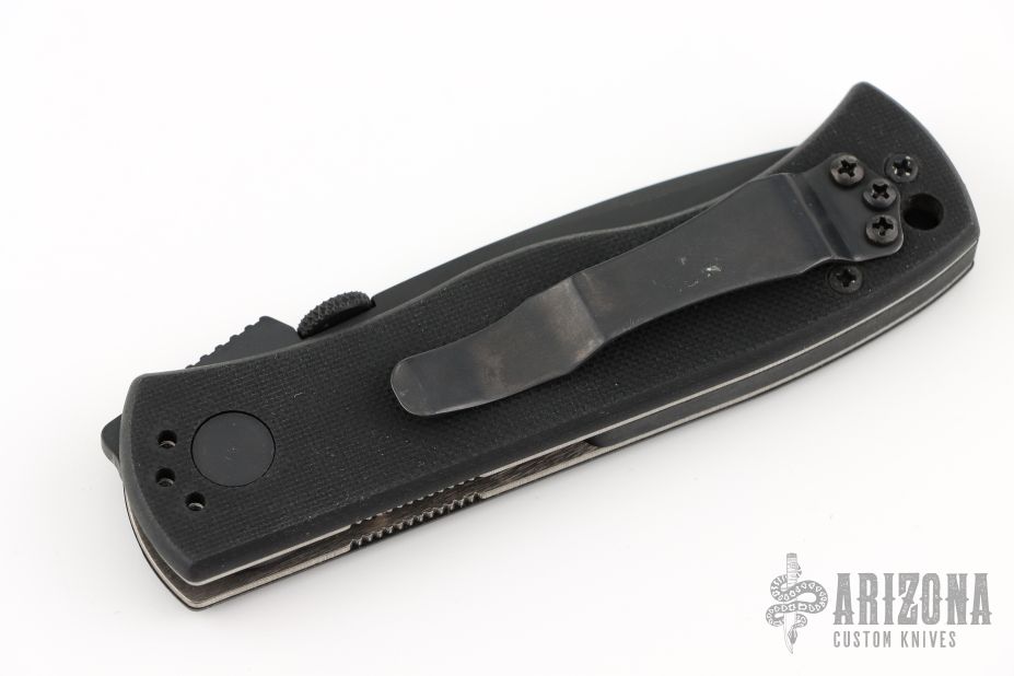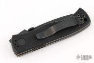 This production Mini CQC-7A has a black coated blade with notched thumbrest and thumbdisc. The handle has black G-10 scales, titanium liners, tip up black stainless clip, lanyard hole.  Dated 2001 and #484. Comes with original box and papers. Has a couple light scuffs, and some marks on the clip, otherwise Excellent condition.