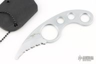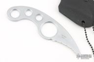 This La Griffe by Emerson Knives features a stonewashed chisel ground fully serrated blade with blunt tip. The handle is skeletonized for a lighter overall weight. This knife was designed by Fred Perrin. Comes with original sheath, box and papers. Has some scuffs and scratches. Excellent condition.