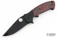This Kasper Flipper by Crawford Knives features a DLC finished blade with jeweled flats, fileworked spine, flipper and a thumbhole. The handle has dovetailed jeweled DLC  titanium bolsters, Lava Flow carbon fiber scales, DLC titanium liners with jeweled interiors and fileworked edges, matching carbon fiber backspacer, tip down jeweled DLC titanium clip with fileworked edges. Nice detent, lockup and blade seating. Comes with a zippered case. New from maker.