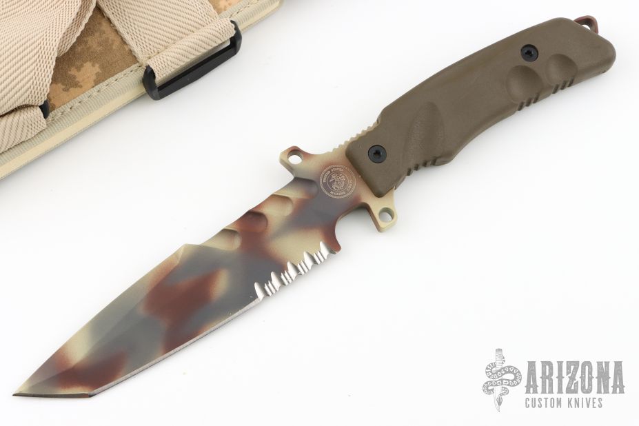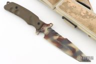 The blade of the Predator 1 is made from N690Co stainless steel, known for its excellent edge retention and corrosion resistance. With a blade length of 17 cm (6.69 inches) and a thickness of 6 mm (0.24 inches), it offers a versatile cutting edge for various tasks. The blade is coated with a desert camo Idroglider finish, providing additional protection and a stealthy appearance.