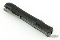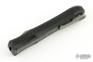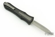 This knife is a Deadlock Model C by Grant and Gavin Hawk. It has a double-edged stonewashed blade. The handle has carbon fiber inlays in the black aluminum frame with a tip down spring clip, titanium. The thumb slide on the handle is also titanium and handle has a carbon fiber overlay.  Grant and Gavin Hawk set out to create a double action OTF with no blade play.... They did it, NO blade play. Comes with maker pouch, card, lip balm and tool. Has a couple light scuffs, excellent condition otherwise.