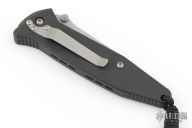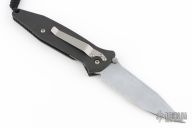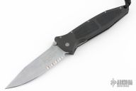 This Socom M/A by Microtech has a silver finished blade with dual thumbstuds, serrations and notched thumbrest. The handle has a black aluminum frame with rubber inserts and a tip down bead blasted stainless steel clip. Dated 03/99. Includes original clamshell box, sheath, and paperwork. Has some light scuffs and scratches, great condition otherwise.