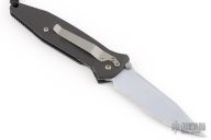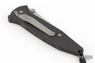 This Mini Socom by Microtech has a silver blade with notched thumbrest and dual thumbstuds. The handle is composed of black aluminum with non-slip inserts. Dated 12/98. Stainless steel clip. Includes original box, MT sheath and papers. Has some light scuffs and scratches, great condition otherwise.