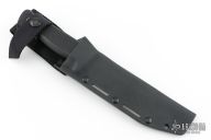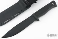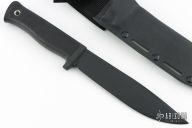 The Model A1 by Fallkniven is a semi-large all-purpose knife for heavy duty use. The powerful blade is made of extremely hard yet tough laminated VG10 steel and will withstand the stress of hard use. The knife is superb to chop with, but also works very well with daily tasks, thanks to the ergonomic grip. The full tang goes entirely through the handle, so you can strike the end of it without breaking the grip. The sturdy black zytel sheath allows you to fasten the knife on your belt or your pack - even upside down. Model A1 is a water repelling concept which works just as well in extreme cold as in stifling heat. Has a black ceracoated spear point blade with false top edge, .238" thick and 1.295" deep. Comes with black nylon/kydex sheath. Has some light scuffs, excellent condition otherwise.
