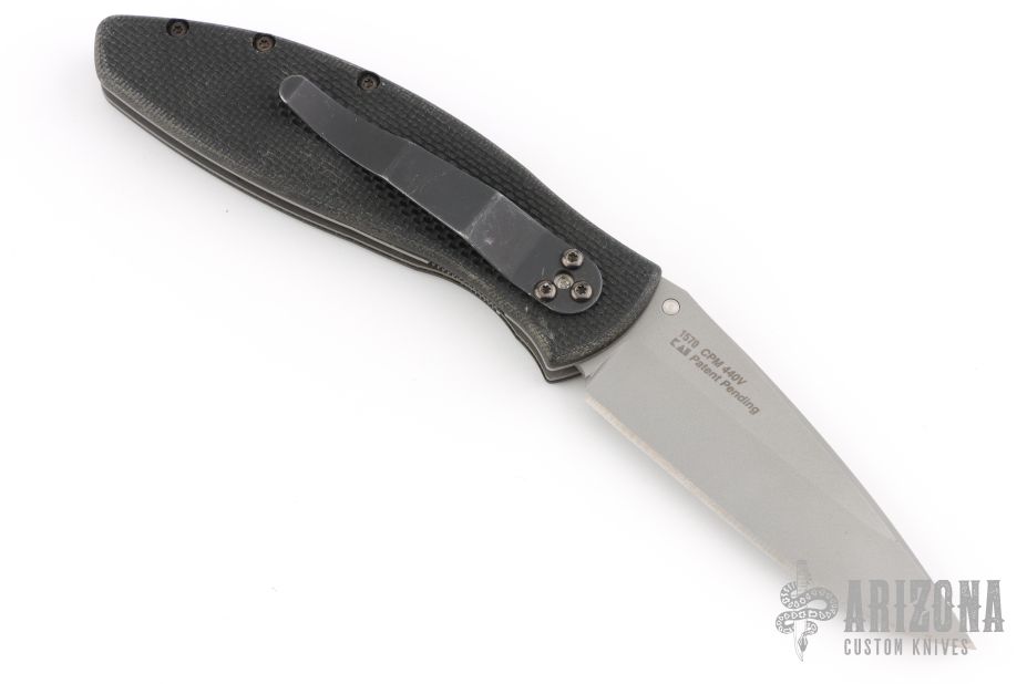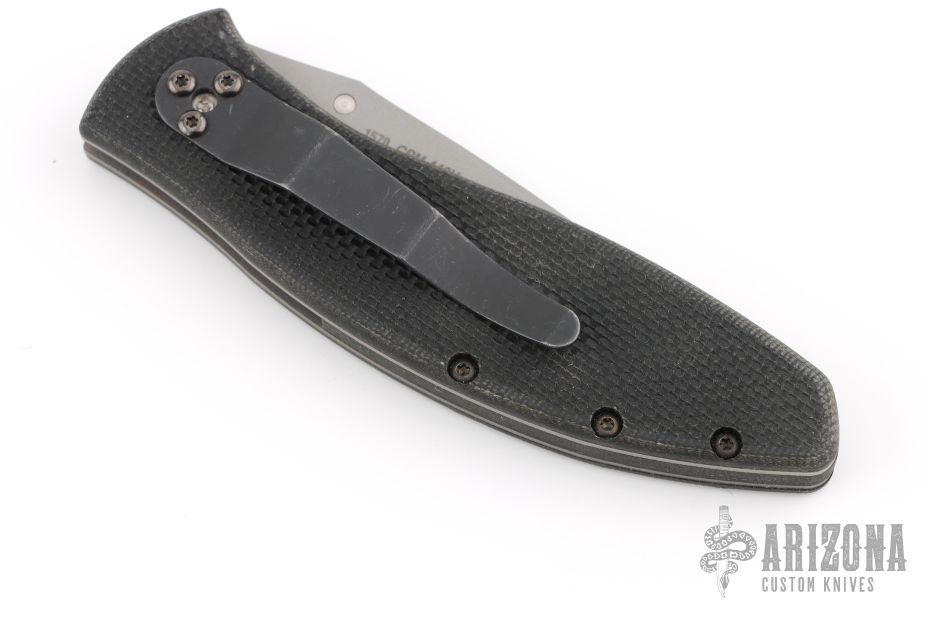 This 1570 Avalanche by Kershaw features a bead blasted blade with single thumbstud. Assisted opening. The handle has black G-10 scales, bead blasted stainless steel liners, black G-10 backspacer, and a tip down black stainless steel clip. Has some light scuffs and scratches, great condition otherwise.