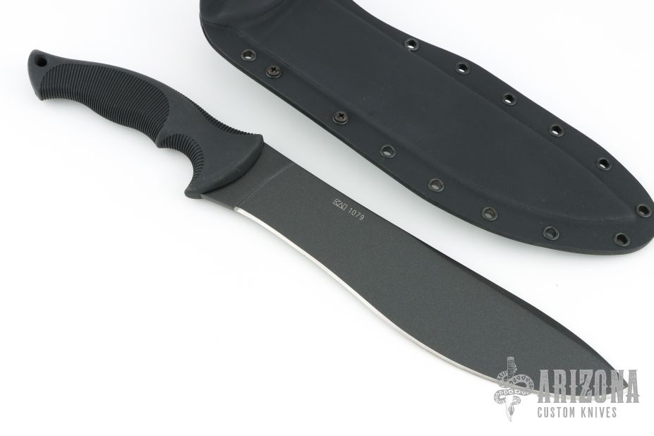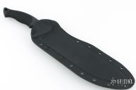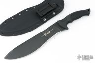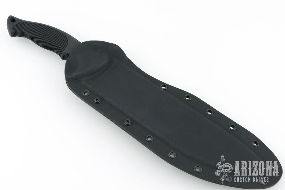 This Outcast from Kershaw Knives features a black drop point recurve blade with false top edge, .195" blade stock and 2.245" blade depth, hidden tang construction. Rubberized handle with lanyard hole in pommel. Includes kydex sheath with belt clip, original box and papers. Excellent condition.