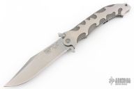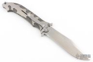 This Cuda Maxx 5.5 by Camillus is a Darrel Ralph design, features a stonewashed blade. The handle has a milled and two-tone titanium frame with a tip down stainless steel clip. Nice action, lockup and blade seating. Assisted opening. Comes with original box, papers, and zipper case. Has a couple light scratches, excellent condition otherwise.
