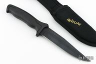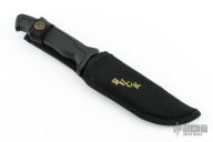 This Night Hawk by Buck Knives features a black clip point blade with false top edge, .235" blade stock and 1.201" blade depth, hidden tang construction with a rubber grip. Comes with original black nylon sheath. Has a few light scuffs, otherwise excellent condition.