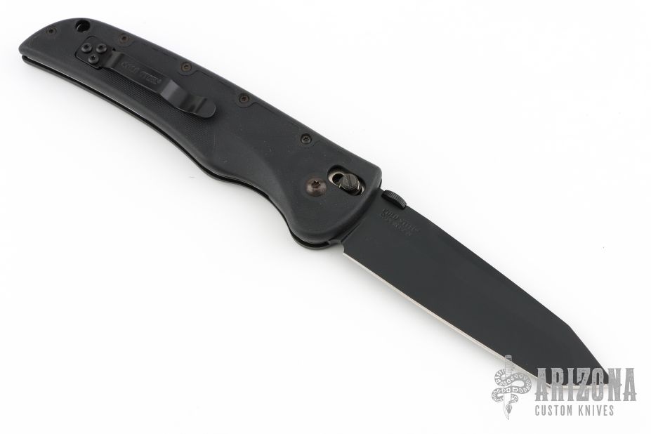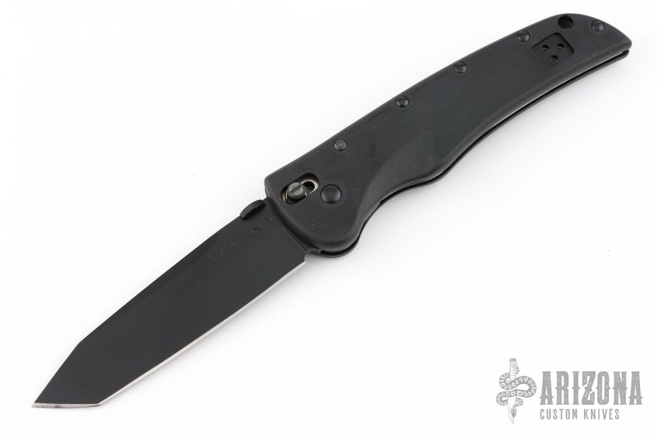This axis locking folder by Cold Steel features a black tanto blade with thumbdisc. The handle has a black handle with a black stainless steel clip, left or right handed carry. Comes with original box. Excellent condition.
