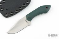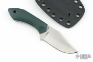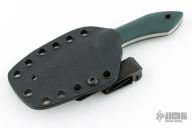 This Esker-S by Boatright Bladeworks features a satin finished hollow ground blade with false top edge, .134" blade stock and 1.016" blade depth, full tang construction. The handle has green G-10 scales with a black canvas micarta pin and lanyard hole. Comes with a kydex sheath. Excellent condition.