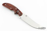 This knife by RD Nolen was made for the Rocky Mountain Knife Company around 2000-2002. It features a mirror polished upswept blade with .135" blade stock and 1.250" blade depth, full tang construction. The handle has dymond wood scales with aluminum pins. Comes with a zippered case. Excellent condition. Comes with an issue of Gun World from July of 1975 with an article about the Nolen Brothers.