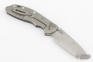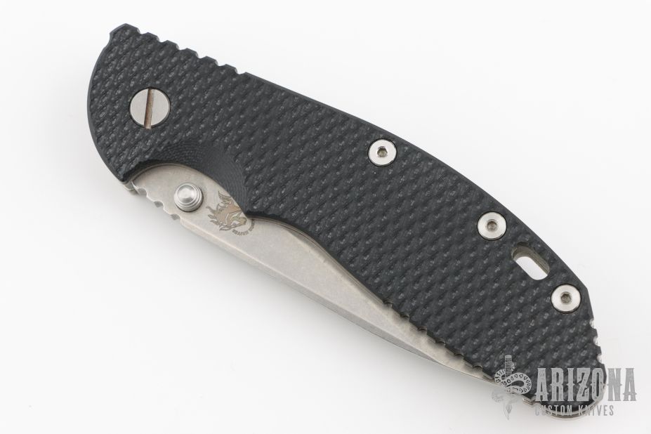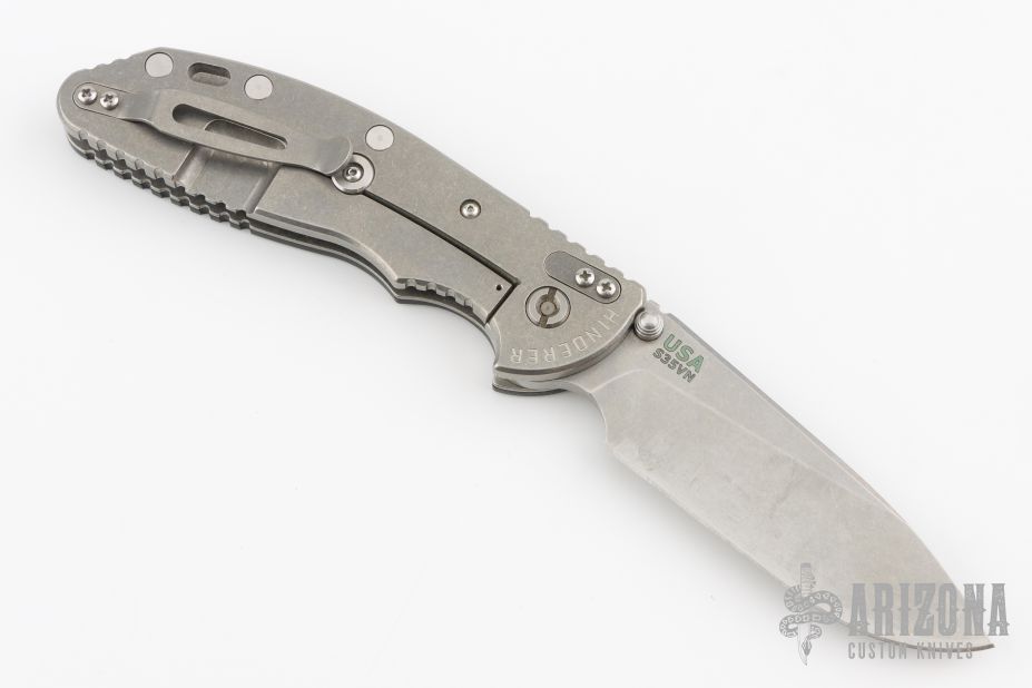 This XM-24 Slicer from Rick Hinderer Knives features a 4" stonewashed blade and a textured black G10 scale with stonewashed titanium frame. Clip can be mounted for tip up or down carry. Blade is centered when closed, locks up with no play. Excellent condition.