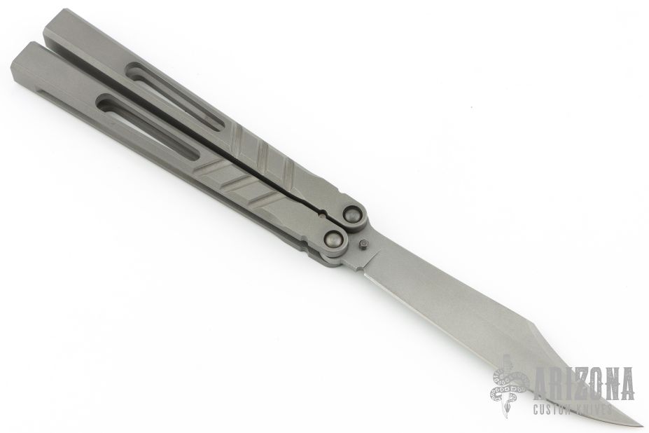 This Alpha Beast Balisong from Blade Runner Systems (BRS) features a tumble finished clip point blade. The handle has a milled and tumbled titanium. Comes with original zippered case and papers. Excellent condition.