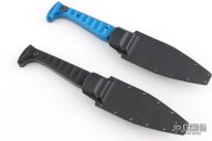 Comes with sheath and blue aluminum trainer with sheath. Has some wear on the blade finish, has scuffs/scratches on the blade, otherwise good user condition.