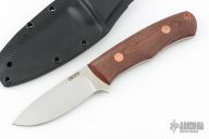 This Model 1 from Dan Crotts features a satin finish drop point blade. .131" blade stock and 1.008" blade depth. The handle has micarta scales with copper pins and lanyard tube over full tang construction. Includes kydex sheath with belt loop set up for horizontal carry. New from maker!