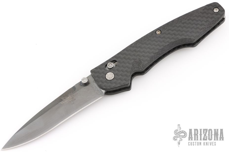 The Warren Osborne designed 770 has the Benchmade Axis-Lock and is exceptionally light with its carbon fiber frame. Blued Stonewashed blade. No longer in production but an excellent gent's sized everyday carry - or a nice addition to a Benchmade collection. Comes with original box and papers. Excellent condition.