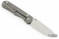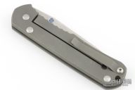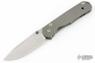 This large Regular Sebenza by Chris Reeve Knives features a tumble finish blade and bead blast titanium frame. Titanium thumb stud and barrel spacer. Lanyard pin in pommel. Nice detent, lockup and blade seating. Has some scuffs and scratches, has a couple small nicks in the blade edge, otherwise good condition.