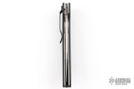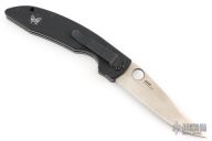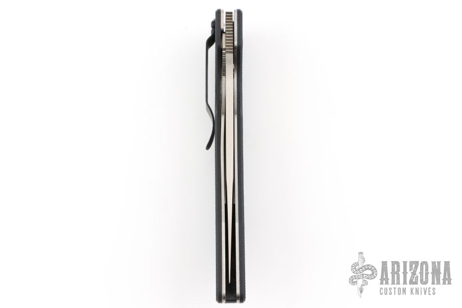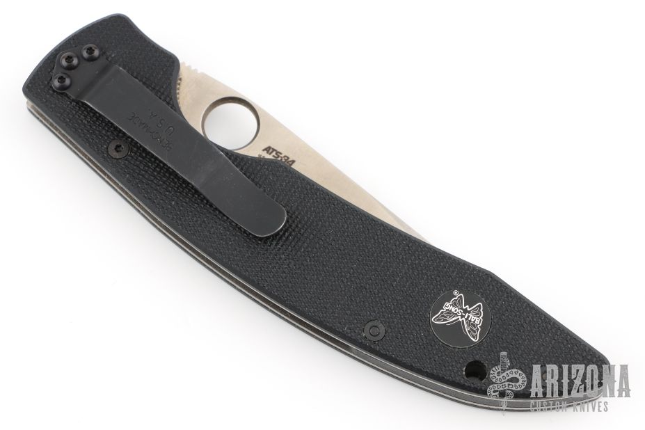 This AFCK Linerlock folder by Benchmade has a spear point blade, thumb hole, and notched thumb rest. Handle is black G10 over titanium liners, black fiber back spacer, lanyard hole. Comes with original box. Has some scratches on the clip. Excellent condition.