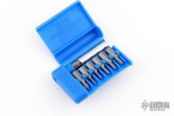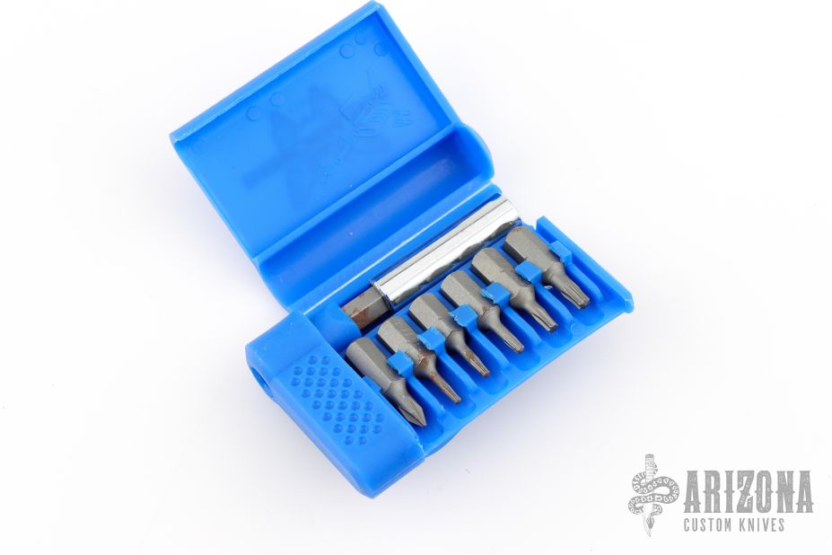 Vintage Benchmade pocket torx set. Plastic construction with pocket clip. Six bits included. Comes with original box. A couple bits show some rust. Excellent condition otherwise. 2.75"x1.75".