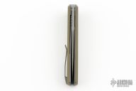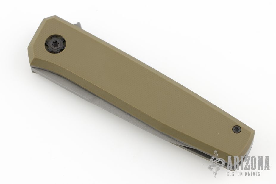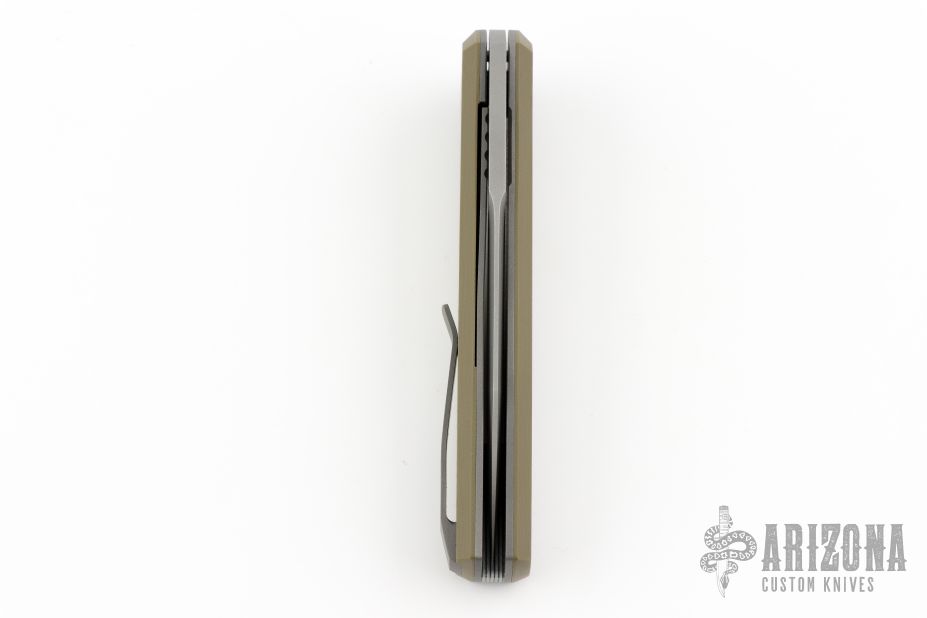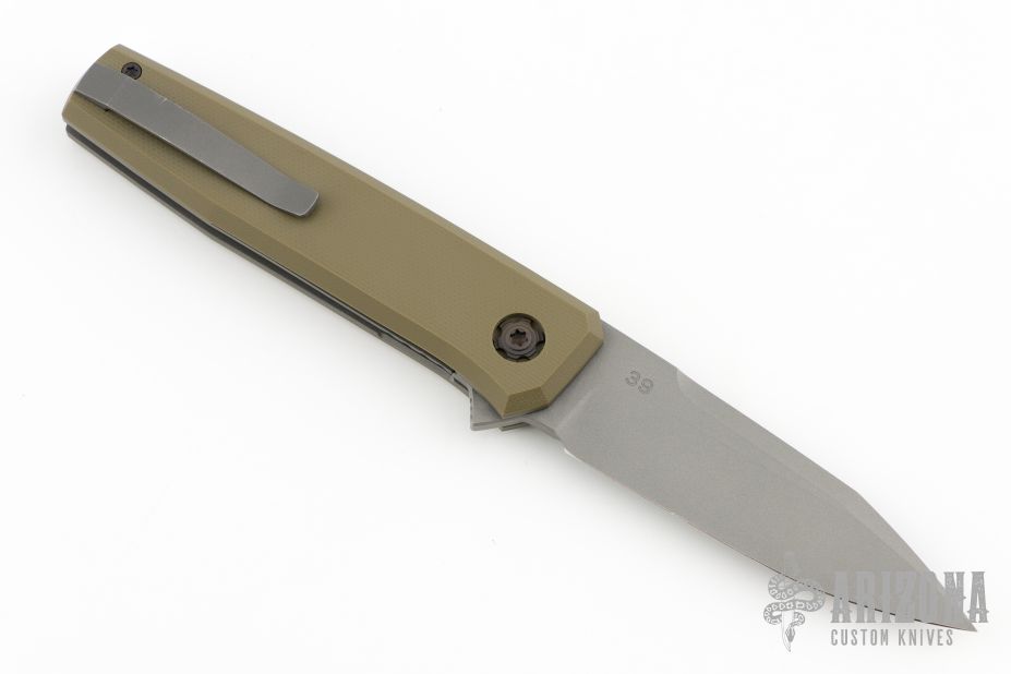 This Neo flipper by Jared Oeser features a bead blast finished blade with false top edge and notched flipper. The handle has a bead blasted titanium frame with OD Green G10 scales over a layered backspacer. Tip up titanium clip. Nice detent, lockup and blade seating. Comes with original zipper case and COA dated 3/15/23. Excellent condition.