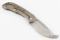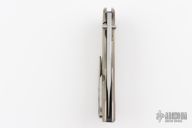 This Model 3 Framelock by Matt Bailey features a hand rub satin finished blade with textured flats and dual thumbstuds. The handle has textured and anodized titanium frame with a matching tip up clip and a black G-10 backspacer. Nice detent, lockup and blade seating. Excellent condition. Comes with a zippered case.