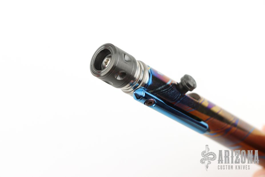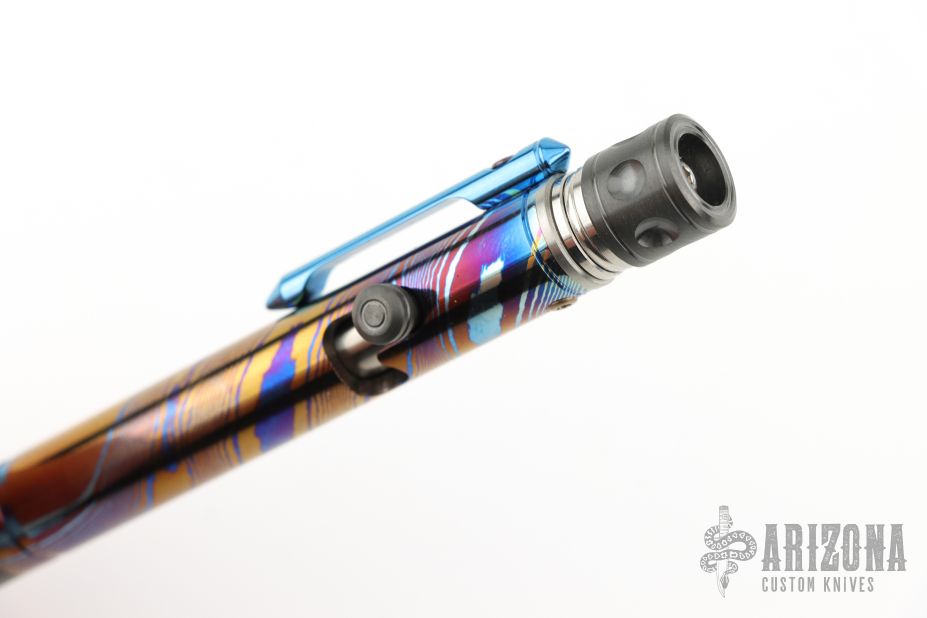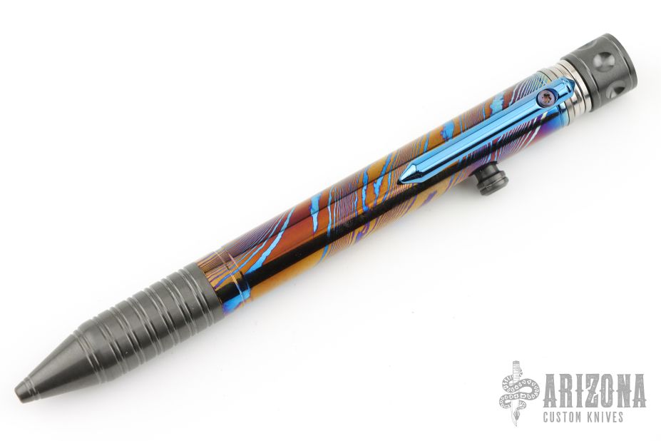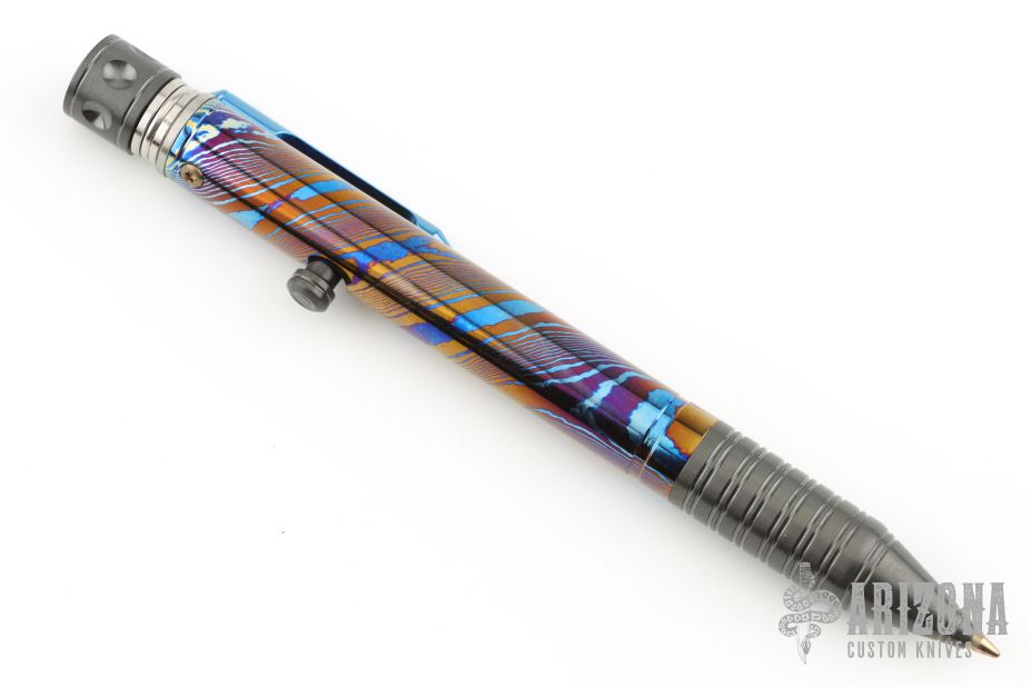 This Custom Pen by Sergey Rogovets has a MokuTi body with zirconium spinner top, tip and bolt, anodized titanium clip. Comes with COA and drawstring bag. Excellent condition. Takes a Parker style refill.