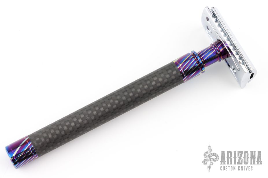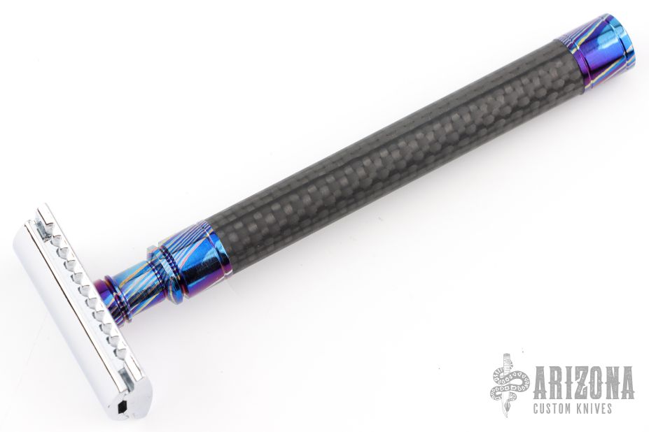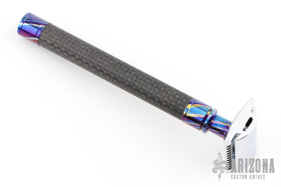 This Custom Safety Razor by Sergey Rogovets has a MokuTi and carbon fiber body. Comes with drawstring bag. Excellent condition.