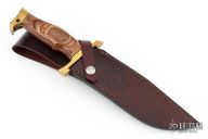 Gil Hibben lives and works in LaGrange, Kentucky. He began making knives part-time after his discharge from the Navy in 1956. He sold his first bowie knife for $45 and that sparked his long and famous career as a professional knife maker. While living in Seattle, WA after his Navy discharge, Gil worked as a machinist for Boeing Aircraft and learned a lot about metals and their properties. In 1964, while living in Salt Lake City, Utah, Gil started making knives full time. This was also the year Gil started making knives from the relatively new 440C steel. Although it is the industry standard now, Gil believes he was the first custom knife maker to use 440C. Hibben has been a full time custom knifemaker since 1957. Over the years Gil achieved fame as a premier custom knife maker and his work has been featured in, and on the covers of, national gun and knife magazines. He has established a whos-who following of collectors including John Wayne, Elvis Presley, Steve McQueen, Sylvester Stallone and Steven Segal or world leaders such as Israel's Defense Minister Moshe Dayan, the Sultan of Brunei and Vice-President Dan Quayle. He has taught and influenced some of the other legendary knife makers such as S.R. Johnson, Harvey Draper and Buster Warenski among countless others. Hibben designed the first line of Browning hunting knives in 1968, the American Kenpo Knife for Ed Parker. Gil's fame dramatically increased in 1988 when Sylvester Stallone, who had purchased several of Gil's custom knives for his own collection, asked Gil to design the now famous knife used in the movie Rambo III. Inducted into the Blade Magazine Cutlery Hall of Fame in 1990.