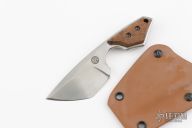 This Ergo Neck Knife features a hand rub satin finished blade with .217" blade stock and 1.264" blade depth, full tang construction with curly koa wood scales. Comes with a kydex sheath and COA dated 2020. Has a couple very light scratches, otherwise excellent condition.