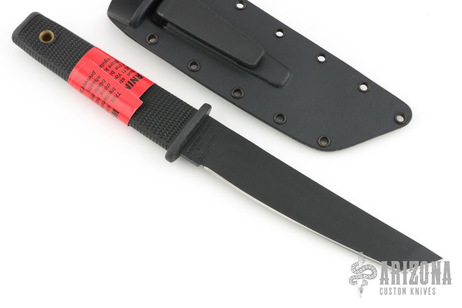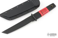 This Kobun by Cold Steel features a black coated tanto blade, .149" blade stock and 1.027" blade depth, hidden tang construction. The has checkered rubber grip and guard, with lanyard hole. Comes with molded sheath with belt clip, and original box. Excellent condition.