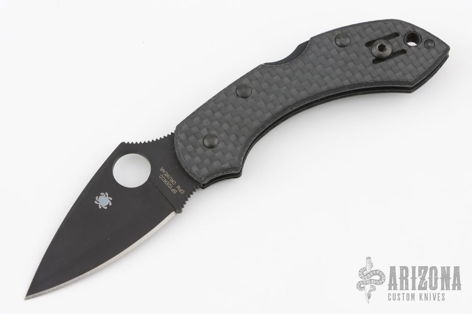 It seems like smaller knives get respect equivalent to their size, very little. Most people don’t look at a subcompact lightweight car and think “high-performance vehicle”. That estimation can change when it’s revealed that little clown-car disproportionately packs 350 horsepower and a high-speed racing package. Stature doesn’t always accurately represent ability and performance, as exampled in the Spyderco Dragonfly. Its cutting ability is unequal to its diminutive package and innocuous name. The small-knife–big feel, works through providently executed ergonomics and premium components like CruWear blade steel, and a carbon fiber handle. Shape also matters - the full flat-ground blade has a spine cusp providing the thumb a natural settling place, controlling the cutting edge. The carbon fiber handle hits all the correct pressure points in the hand and has a purposeful flat shelf at the base where the pinkie finger rides as a leveraging point. Deep pocket wire clip.