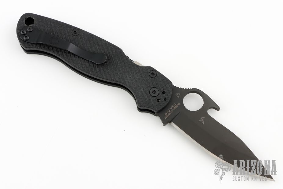 This Paramilitary 2 Linerlock Folder from Spyderco has a black finished clip point blade with thumbhole, Emerson's Wave Feature and notched thumbrest. Handle is black G-10 with stainless steel liners and stainless steel 4-way reversible clip. Comes with original box and papers. New condition.