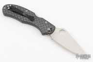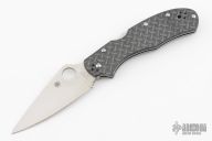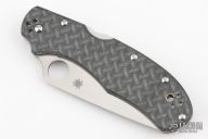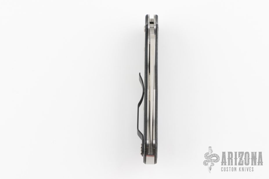 This lock-back folder features a satin finished blade with thumb-hole and notched thumbrest. The handle has carbon fiber scales, stainless steel liners and back-spacer, and black stainless steel clip, 4-way reversible. Comes with original box and papers. New condition.
