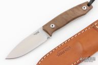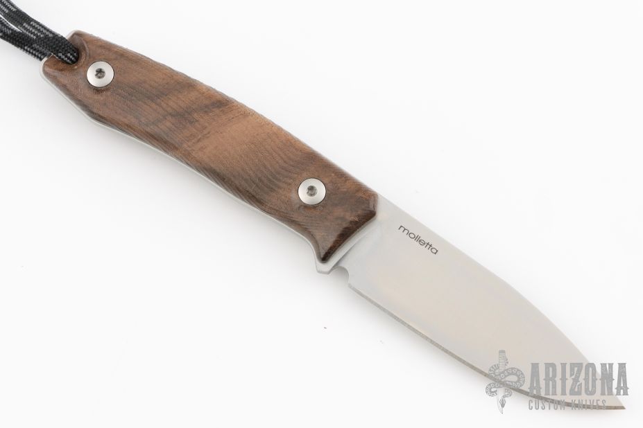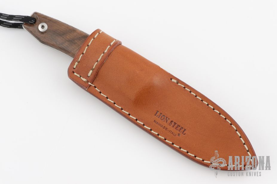 This M1 by Lion Steel features a satin finished drop point blade with .125" blade stock and .921" blade depth. The handle is comprised of a machined walnut scales with full tang construction. Lanyard hole. Comes with original box, papers, and leather sheath. Has a couple light scuffs, excellent condition otherwise.