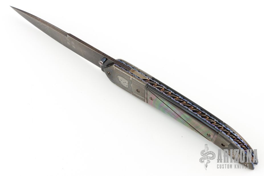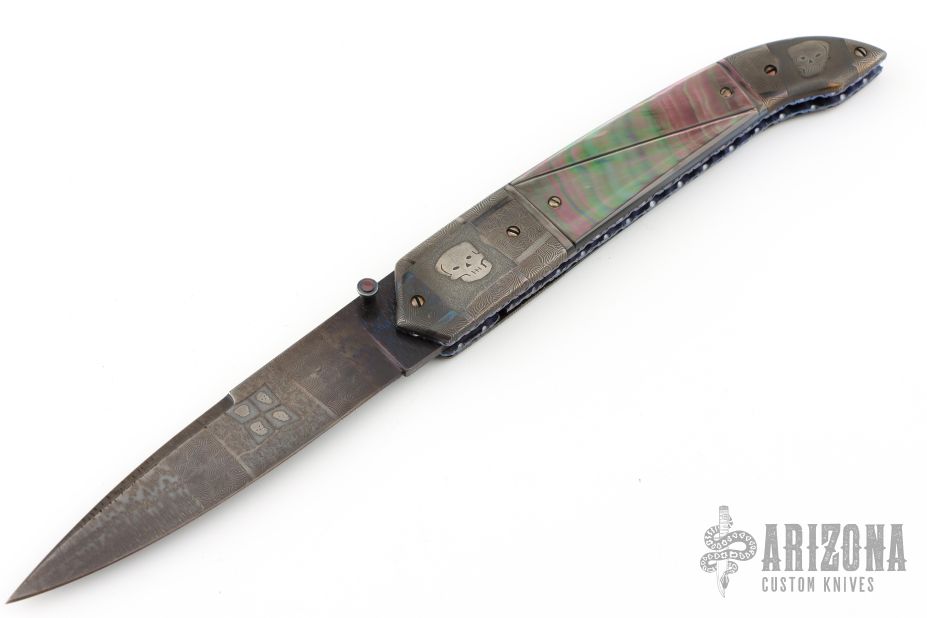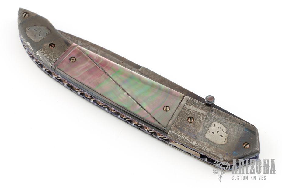 Mosaic Damascus and Black Lip Pearl Linerlock