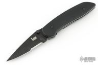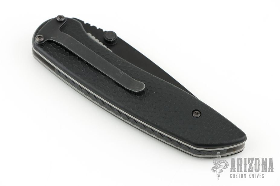 The H&K Scorch Code 3 features a unique dual-action design. The knife has a black drop point blade with serrations, notched thumbrest and dual thumbstuds. The handle is textured black FRN with black stainless steel liners and tip down clip. D/a fires hard. Has scuffs and scratches great condition otherwise.