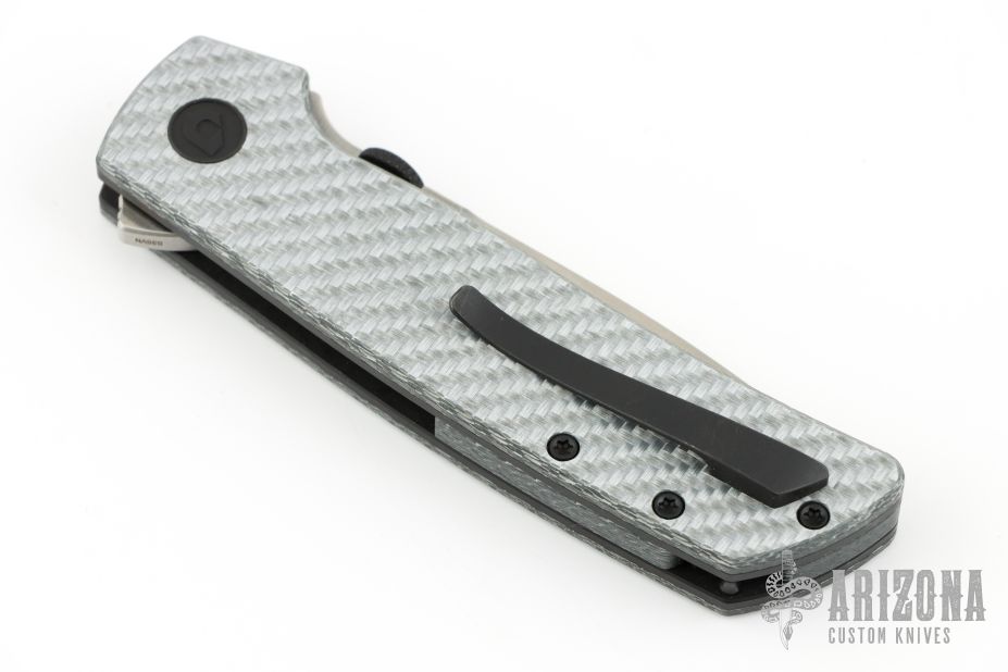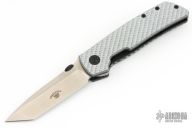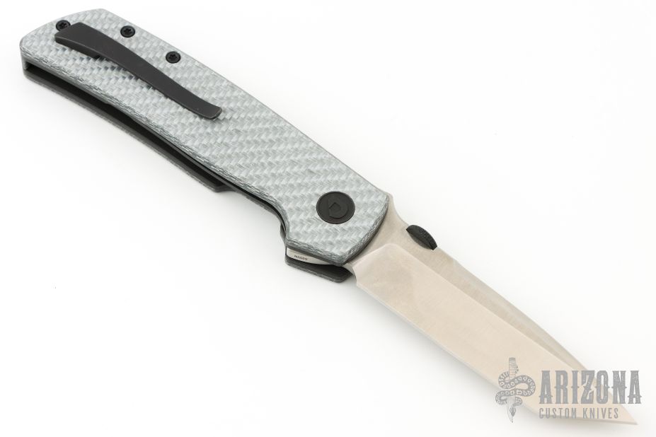 This ATCF by Massdrop is a Bob Terzuola design. It has a satin finished tanto blade with thumbdisc, notched thumbrest and flipper. The handle has silver twill scales, black titanium liners and tip up clip with hidden screws. Comes with Massdrop zipper case. Has a couple light scuffs, otherwise excellent condition.