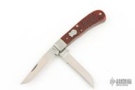 Case and Tony Bose collaboration in 2000. Two satin finish blades with half stops. Satin stainless bolster and chestnut colored jigged bone scales with stainless shield escutcheon. Very well made knife for a fraction of a custom Bose trapper. Excellent condition. Comes with original box, zippered case and papers.