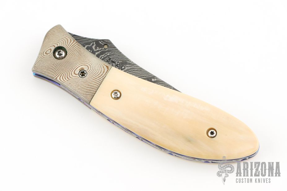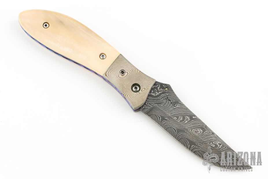 "I began making knives in 1996. All of my knives are made by the stock removal method. Most of the folders I make are of the liner design. I do make other type locks by request. I use a wide variety of materials in my knives. The Damascus I use comes from top makers of Damascus. Ivory and pearl are of the highest quality I can find. Other materials I use include any type of steel that's available for blades and bolsters. Scale material will include micarta, carbon fiber, G-10, titanium etc."