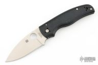 This Shaman PLN by Spyderco features a satin spear point with notched thumb and finger rests, thumbhole. The handle has black canvas micarta scales, inlaid stainless steel liners and a stonewashed stainless steel backspacer, 4-way reversible stainless steel clip, lanyard hole at the butt. Excellent condition. Comes with original box and papers.