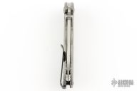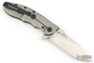 This Hinderer Designed 0562 Framelock Flipper has a drop/ spear point blade with swedge, notched thumb rest, dual thumb studs and flipper. Handle has a stonewashed titanium frame with stainless steel lockbar insert and lockbar stabilizer. Stainless steel clip is tip up. Comes with original box and papers. #13364. Excellent condition.