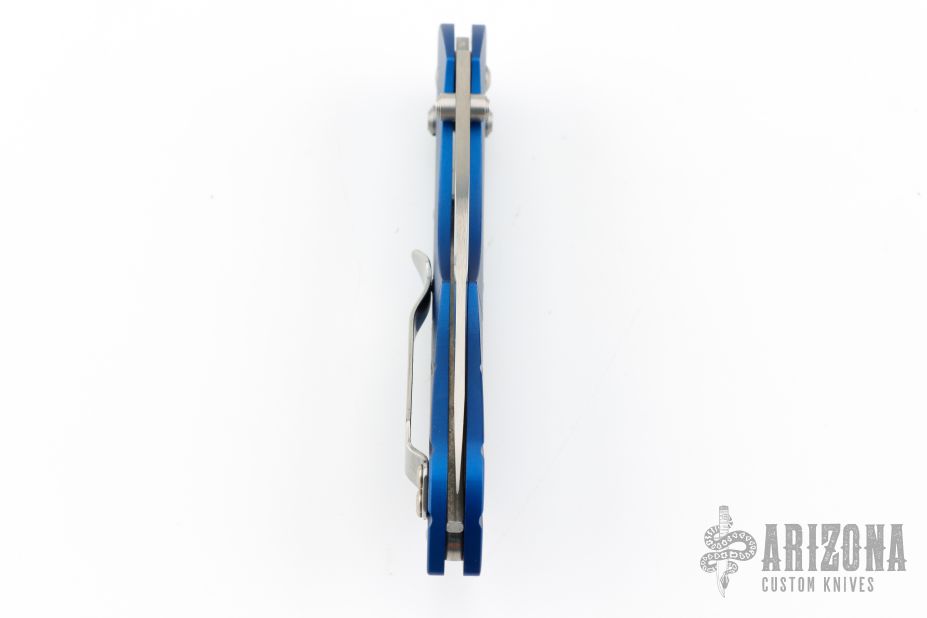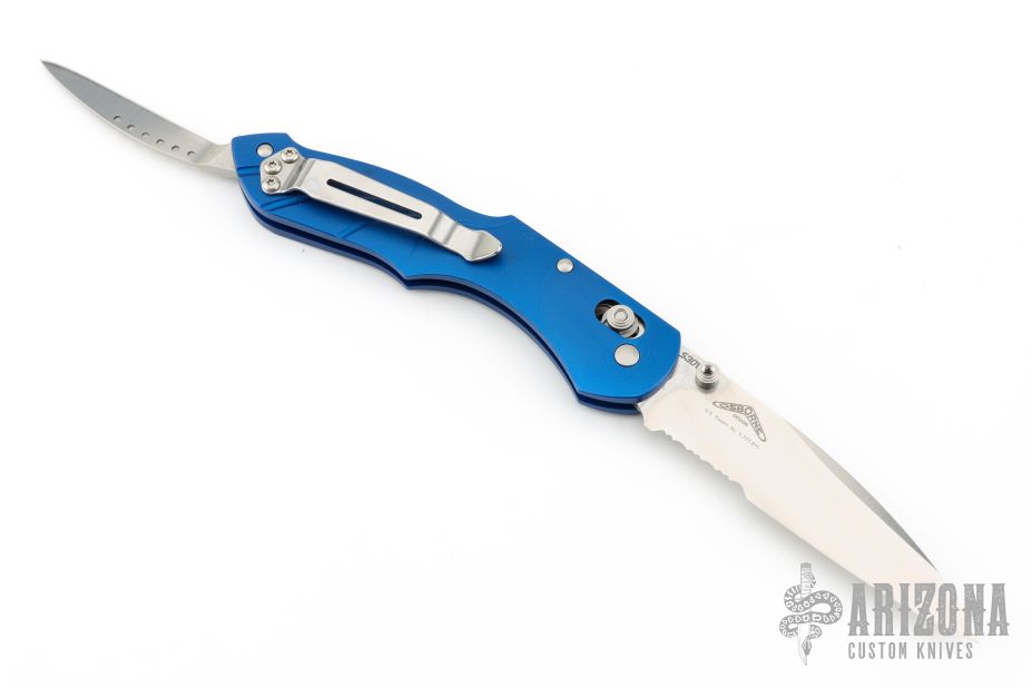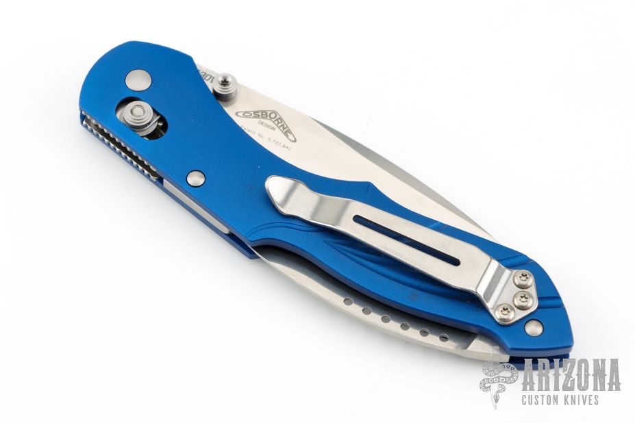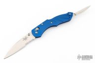 The Switchback is a Warren Osborne design featuring a main AXIS actuated blade and a slipjointed second blade on the back end. This Switchback has a satin combo edge blade and anodized blue frame. Includes original box and paperwork. Excellent condition.