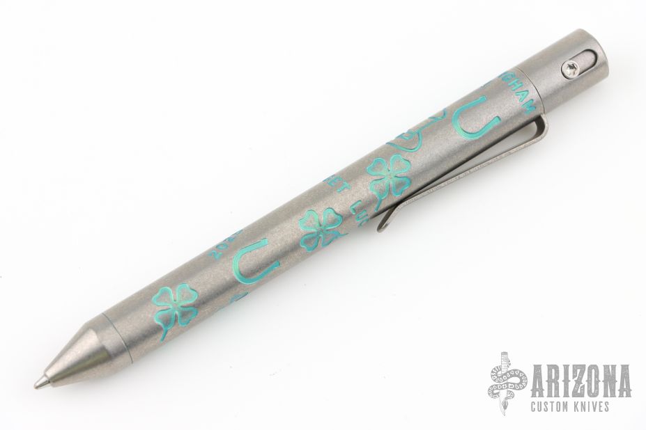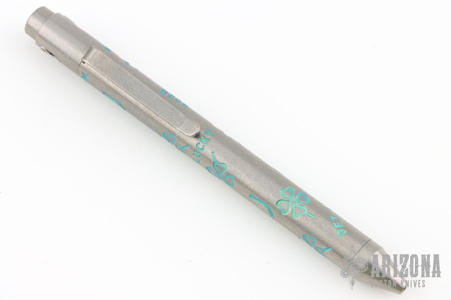 This pen by Nottingham Tactical features a tumbled titanium construction. This pen features a double lock. Comes with origianl box and papers. Excellent condition.